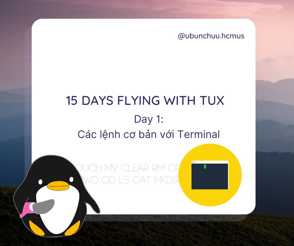 Học phải đi đôi với hành, Ubunchuu cung cấp cho các bạn một bài tập điều khiển thao tác với files và thư mục (làm quen với Terminal) của Ngày 1 trong hệ thống bài học "15 Days Flying With Tux" như sau: